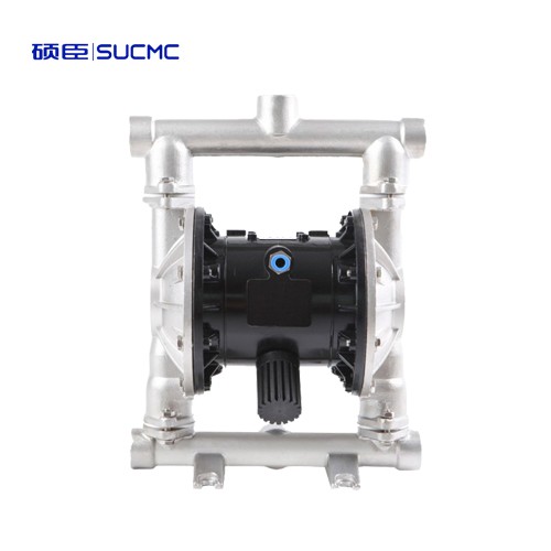 在隔膜泵的兩個對稱工作腔中,各裝有一塊有彈性的隔膜,聯桿將兩塊隔膜結成一體,壓縮空氣從泵的進氣接頭1進入配氣閥3后,推動兩個工作腔內的隔膜,驅使聯桿聯接的兩塊隔膜同步運動。與此同時,另一工作腔中的氣體則從隔膜的背后排出泵外。一旦到達行程終點。配氣機構則自動地將壓縮空氣引入另一個工作腔,推動隔膜朝相反方向運動,這樣就形成了兩個隔膜的同步往復運動。每個工作腔中設置有兩個單向球閥4,隔膜的往復運動,造成工作腔內容積的改變,迫使兩個單向球閥交替地開啟和關閉,從而將液體連續地吸入和排出。