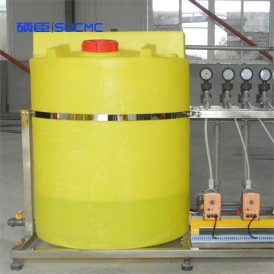 一般為一箱兩泵一臺(tái)電動(dòng)攪拌器組成一整套系統(tǒng),亦可根據(jù)用戶要求,構(gòu)成兩箱兩泵,兩箱多泵,多箱多泵多種結(jié)構(gòu)。可用于液液、固液、氣液藥劑溶液的配制、定量投加。